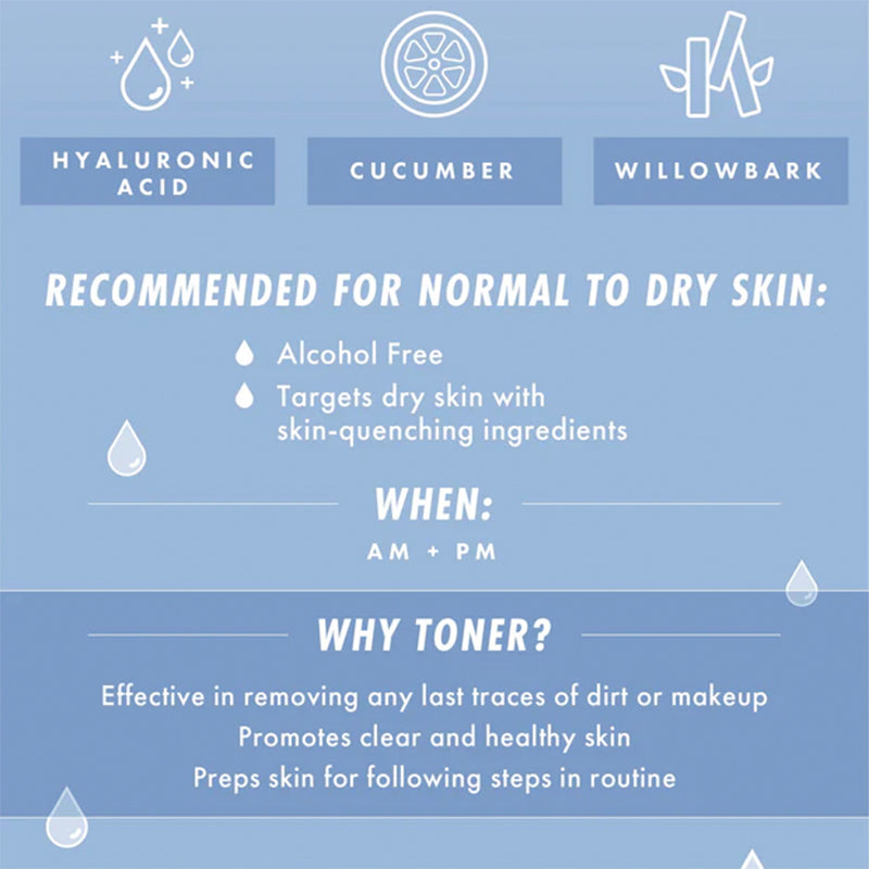 THE GOOD STUFF – Formulated with Hyaluronic Acid to lock-in hydration, Cucumber Water to replenish moisture and Willow Bark for soft, clear-looking skin.